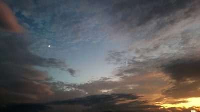 そして、半月と夕焼け空。 ふと見上げてみるといいことあるね。